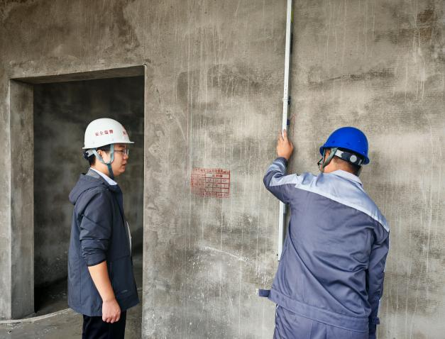 本次检查聚焦关键施工环节,以职工食堂二层、三层墙面抹灰作业为核心抽检对象。检查组采用激光测距仪、2米靠尺等专业检测设备开展实测实量,数据显示:墙面抹灰平整度误差稳定控制在3-4毫米区间,优于《建筑装饰装修工程质量验收标准》(GB 50210)中≤5毫米的规范要求,实测合格率与精度等级均达优良标准,充分体现项目精细化施工水平。