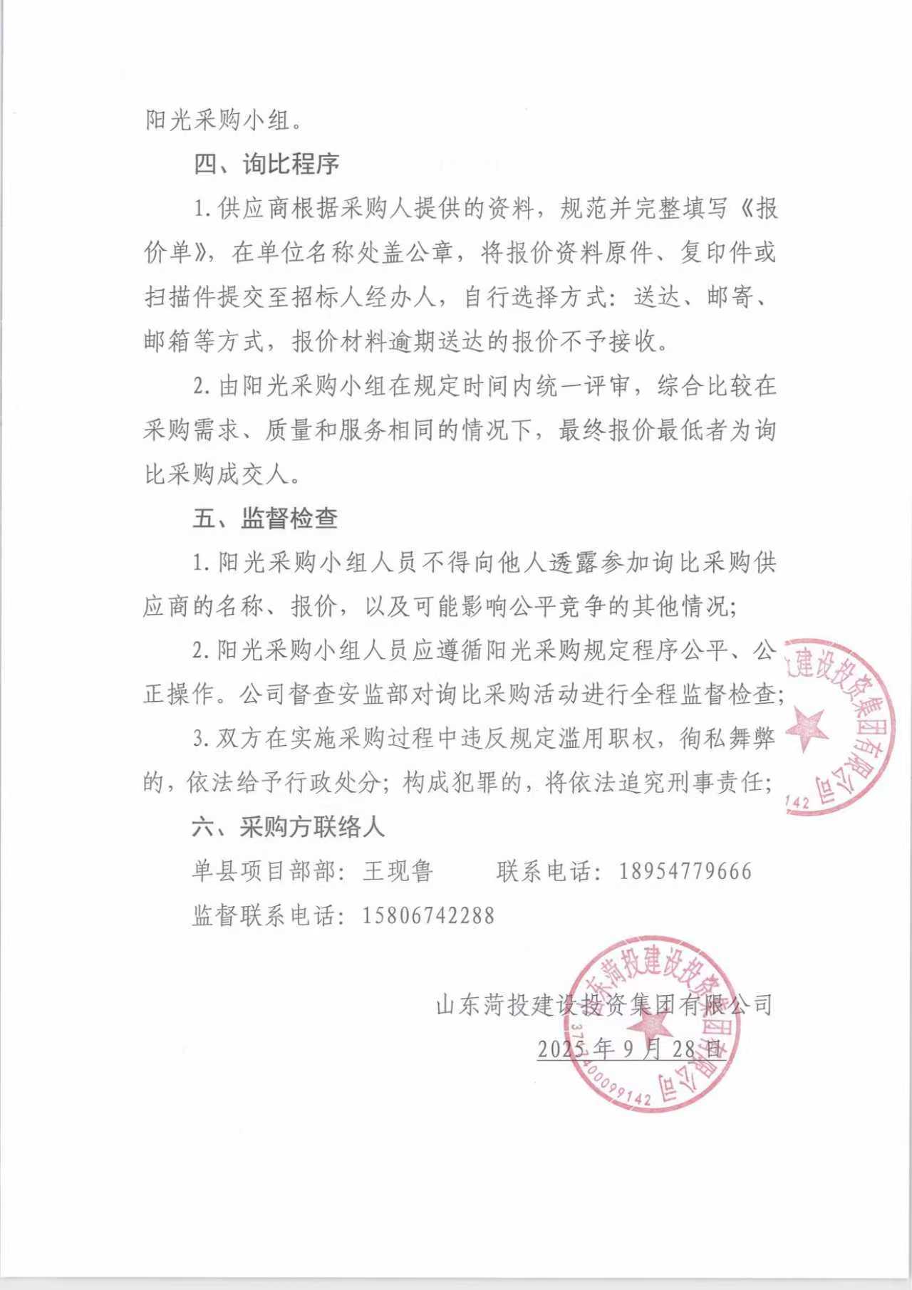 山东菏投建设投资集团有限公司 完善单县项目部竣工图纸服务比价方案