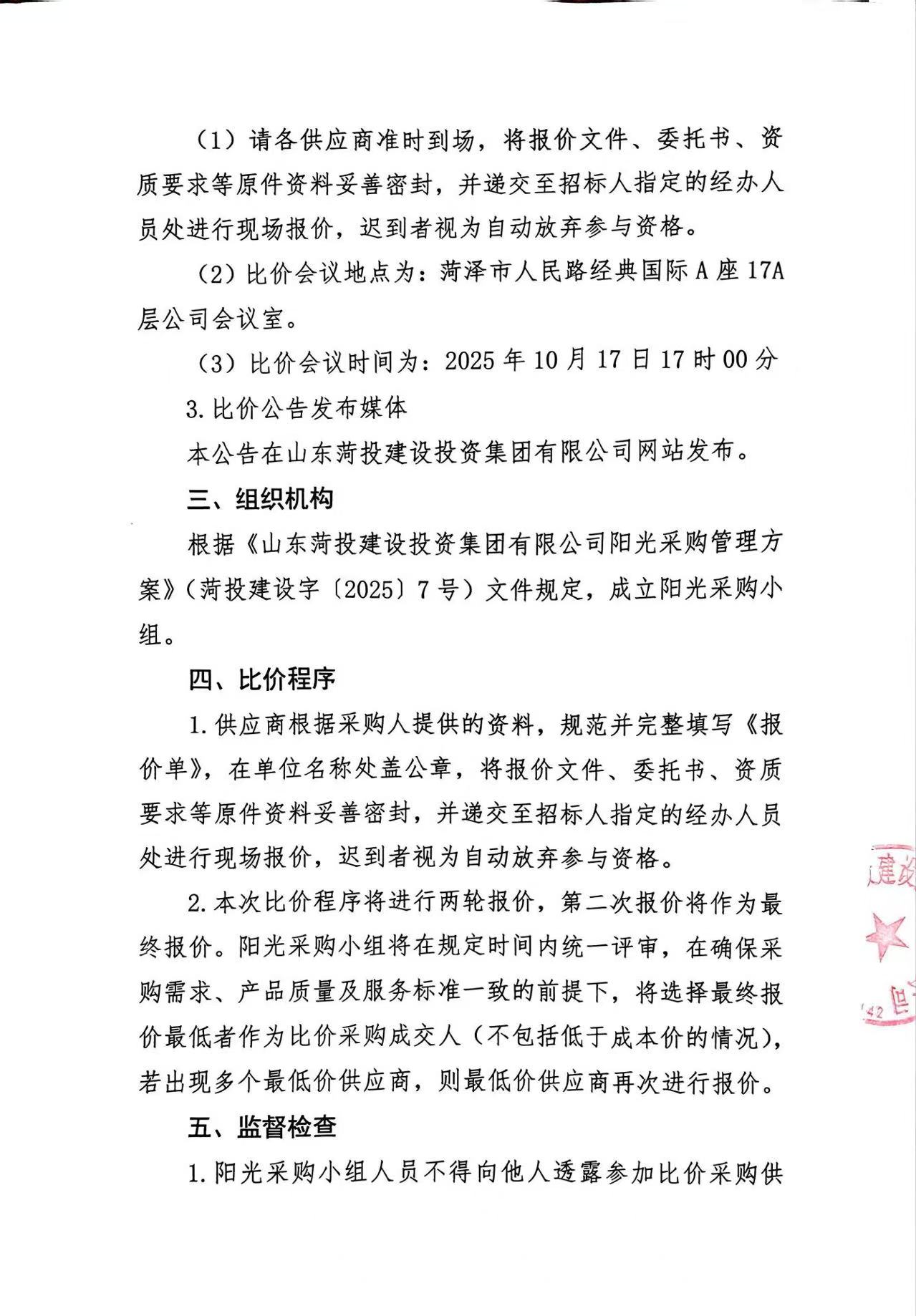 山东菏投建设投资集团有限公司配电室工程比价方案
