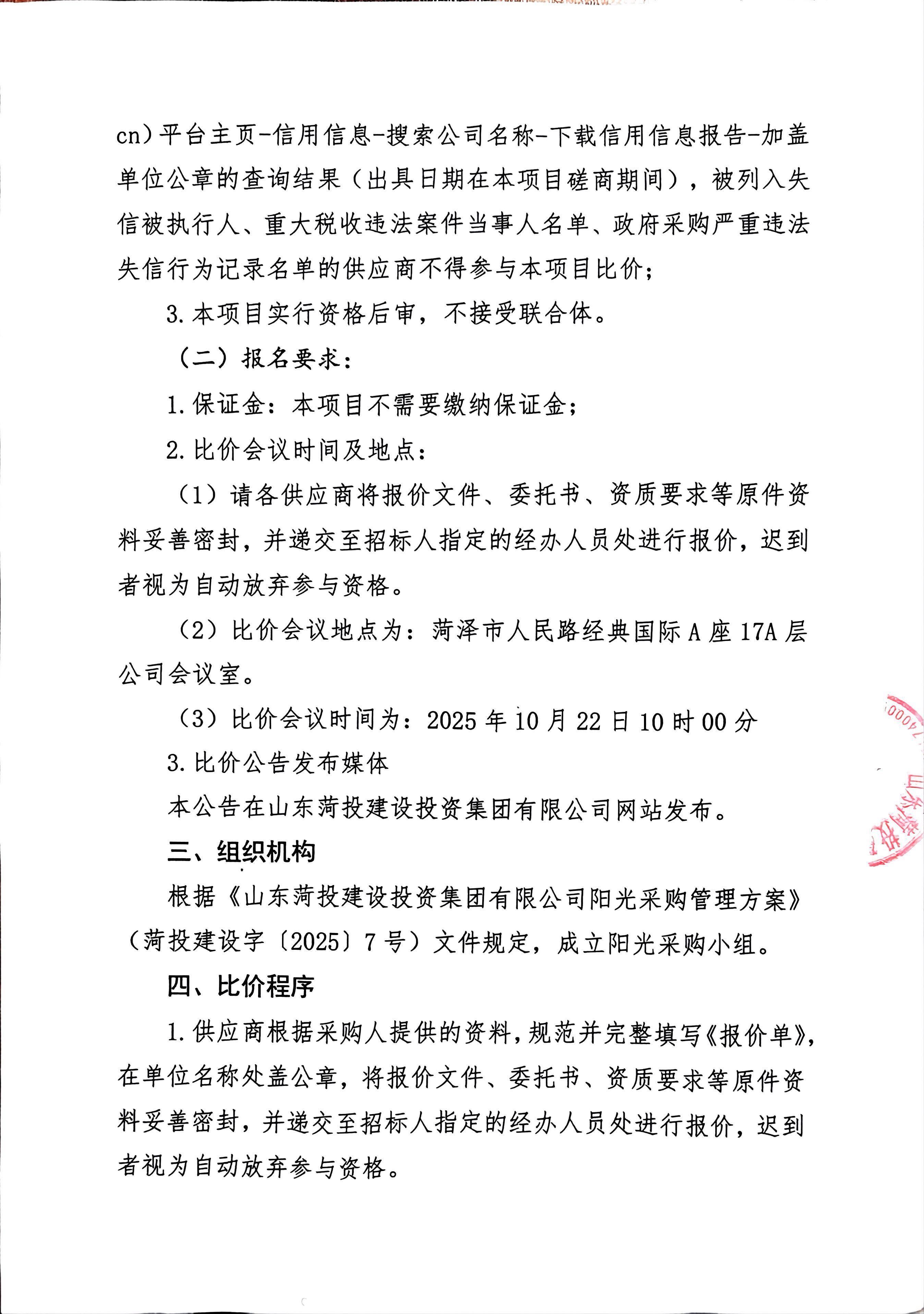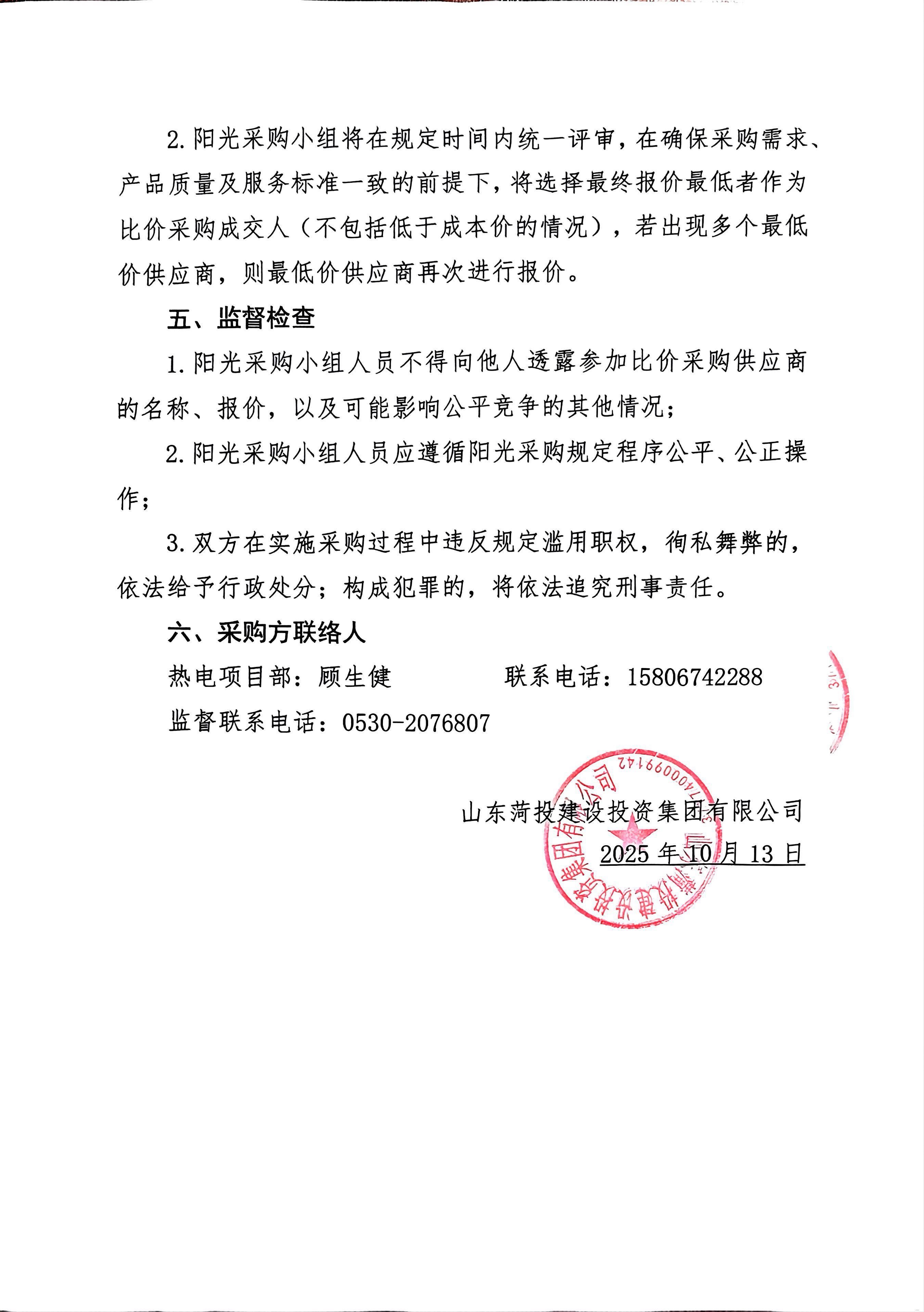 山东菏投建设投资集团有限公司配电室工程比价方案