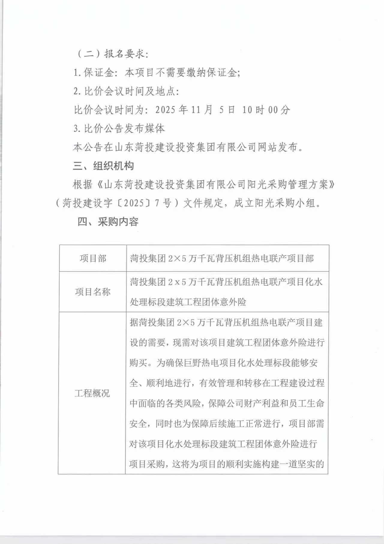山东菏投建设投资集团有限公司 建筑工程团体意外险比价公示