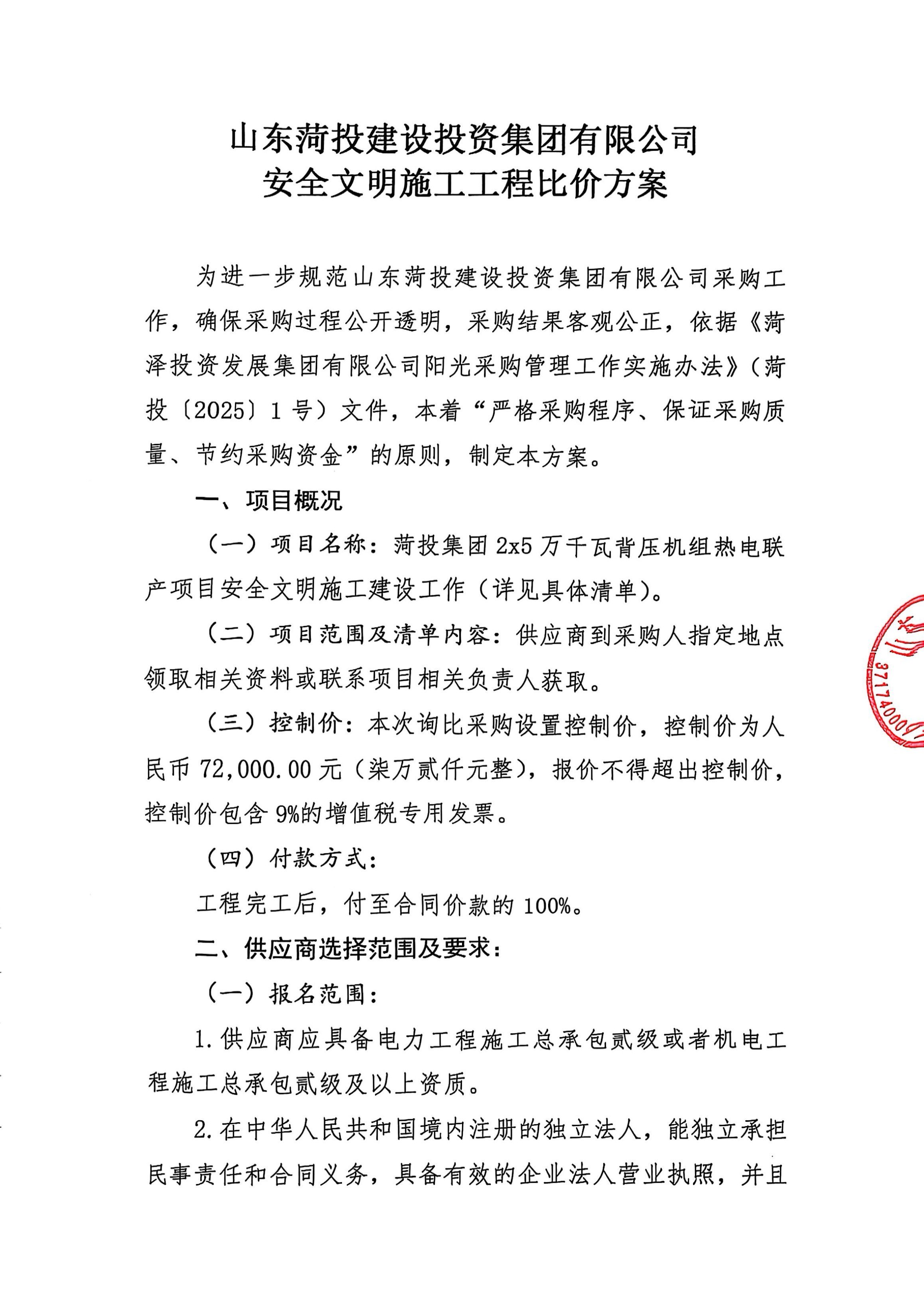 山东菏投建设投资集团有限公司安全文明施工工程比价方案