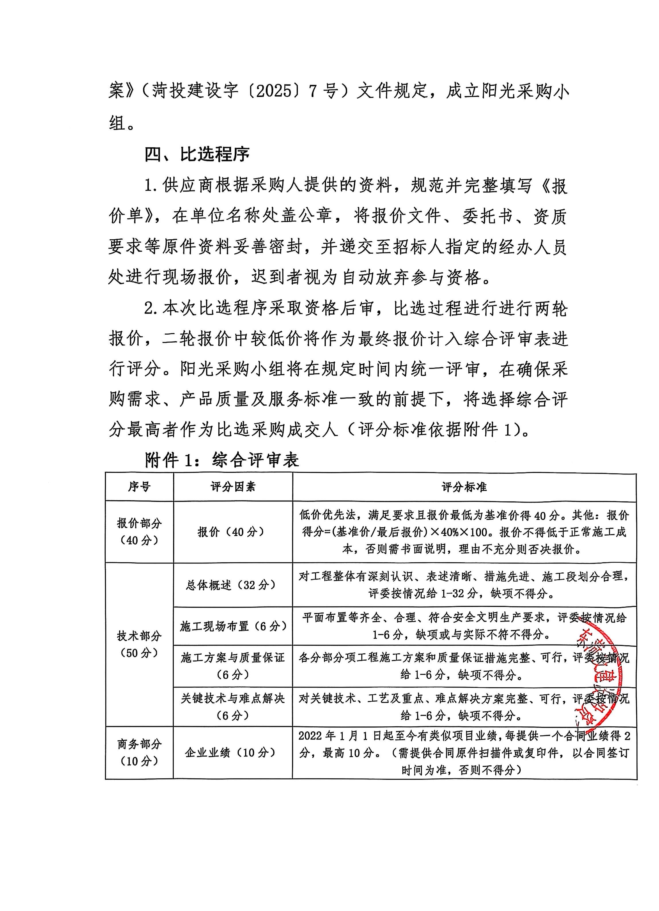 山东菏投建设投资集团有限公司化水处理标段安装工程劳务比选方案