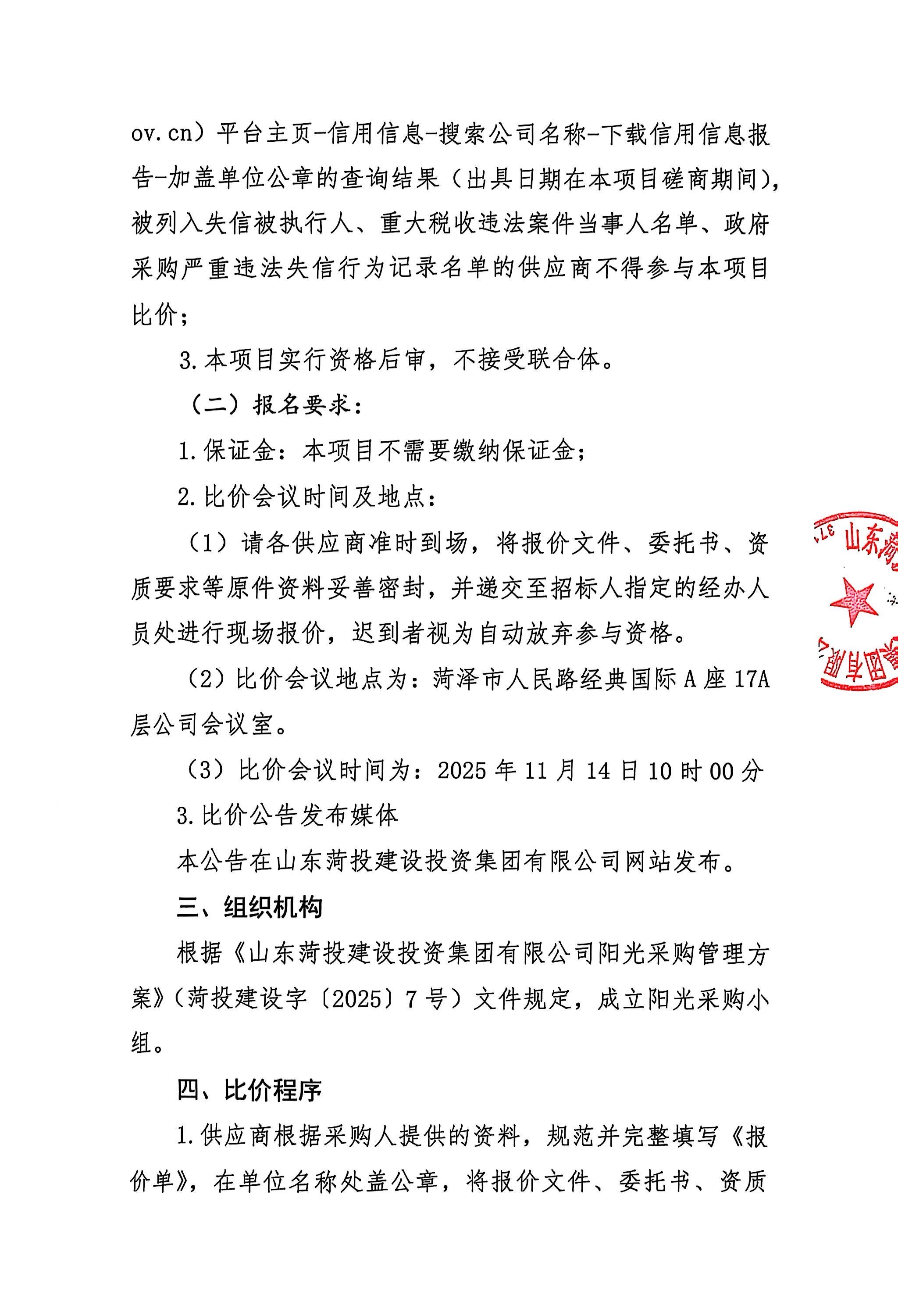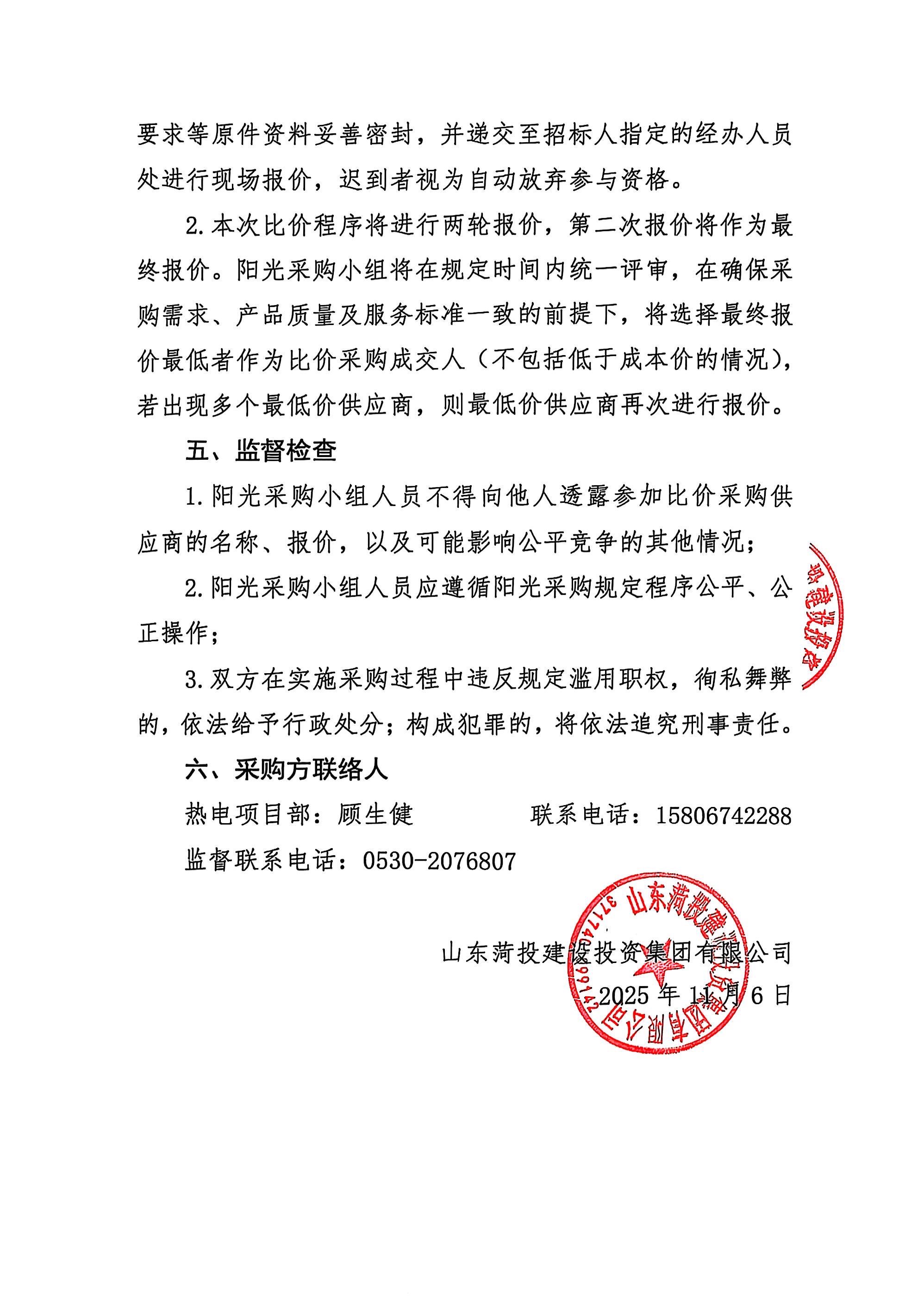 山东菏投建设投资集团有限公司 关于菏投集团2x5万千瓦背压机组热电联产项目安 全文明施工工程施工队伍比价的流标公示