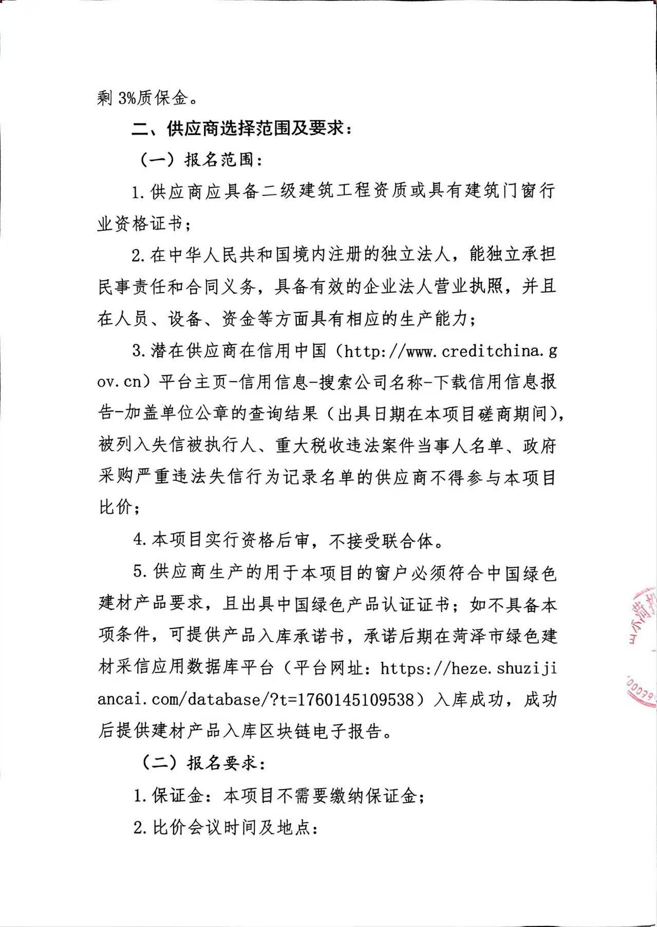 山东菏投建设投资集团有限公司 门窗工程比价方案