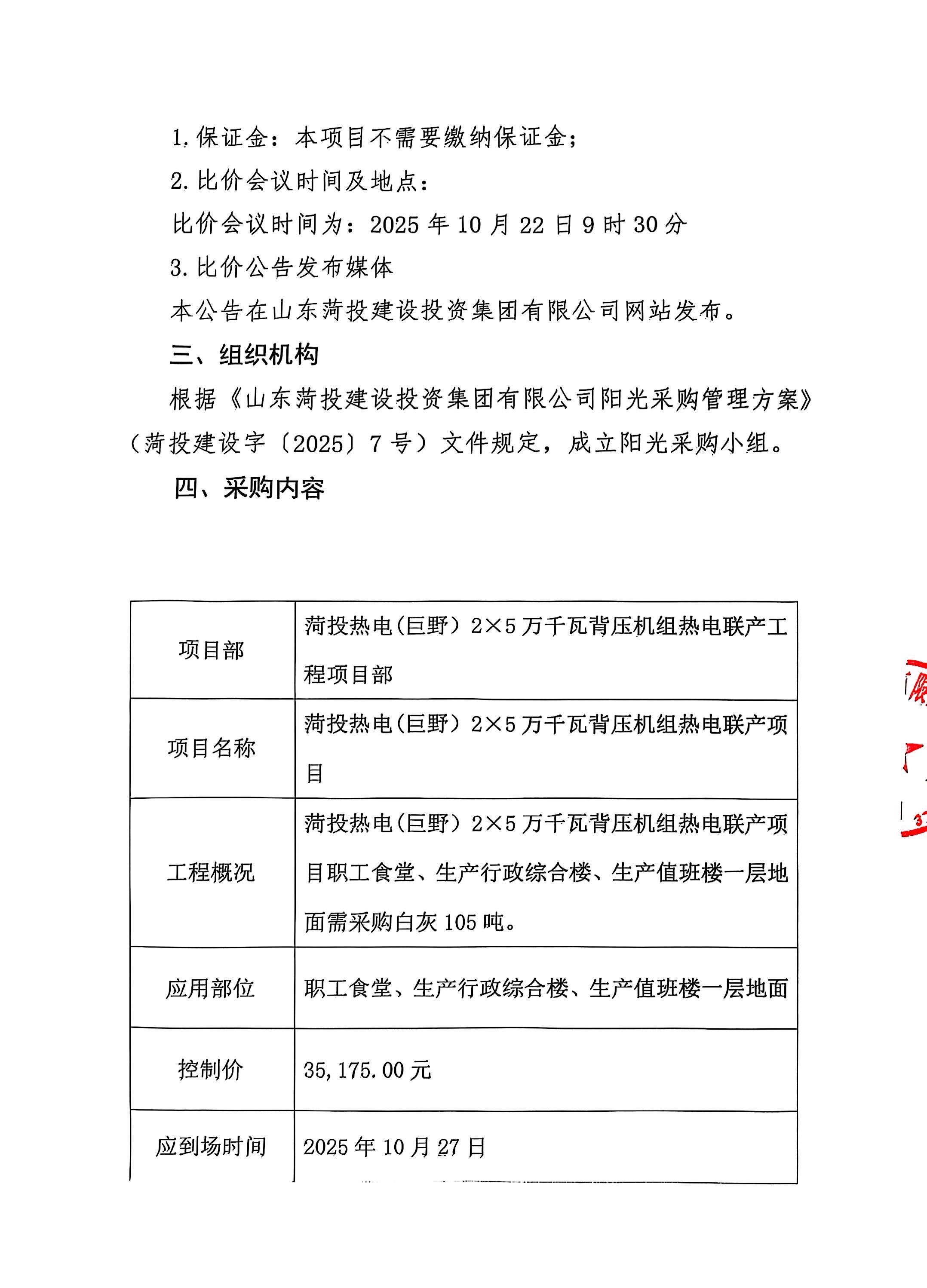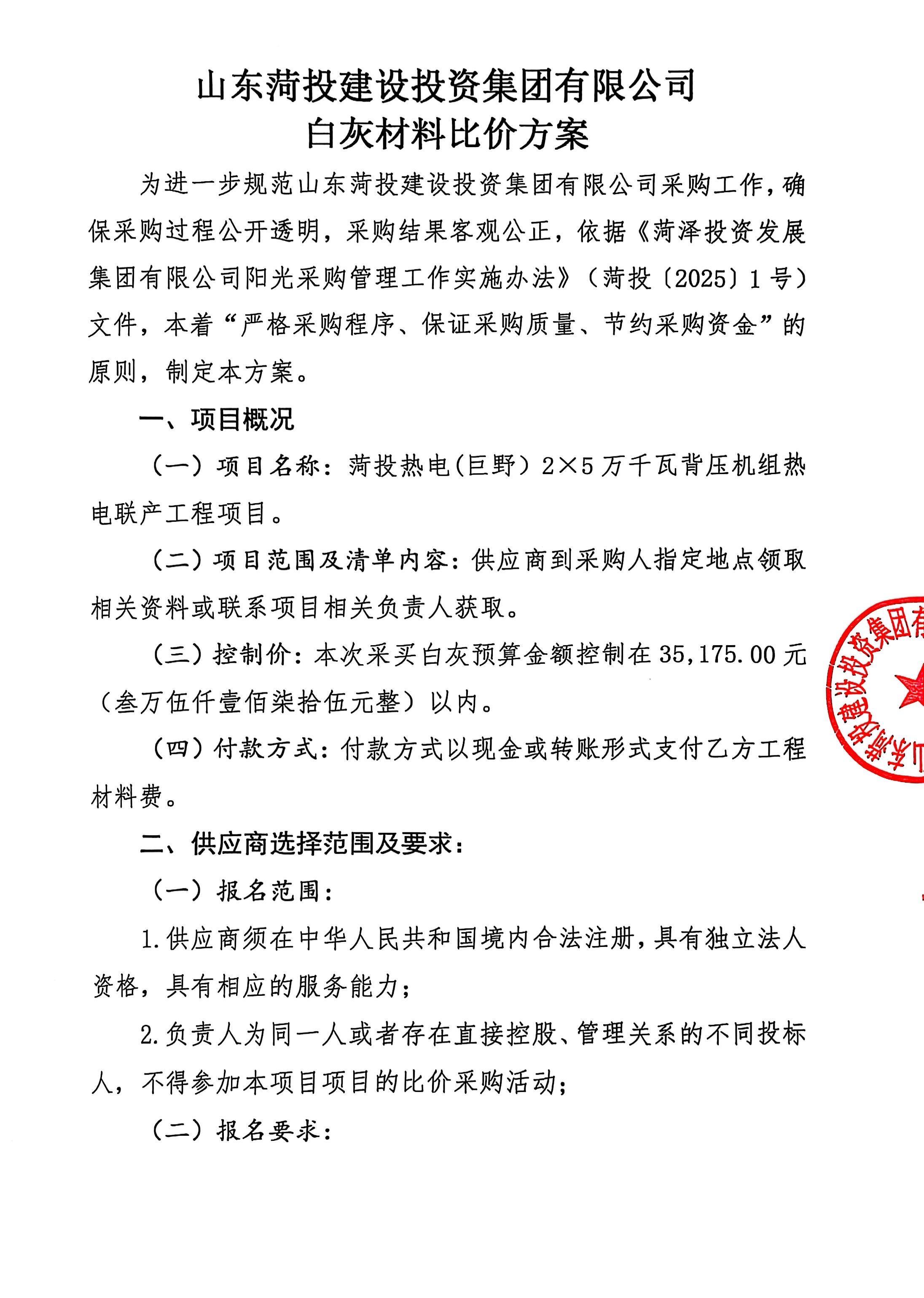 山东菏投建设投资集团有限公司 白灰材料比价方案