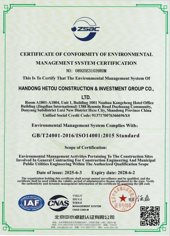 环境管理体系认证证书