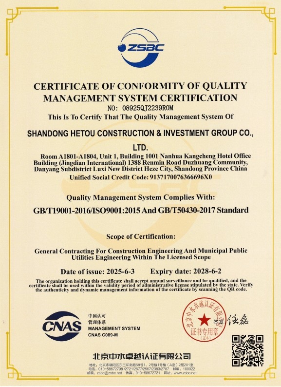质量管理体系认证证书